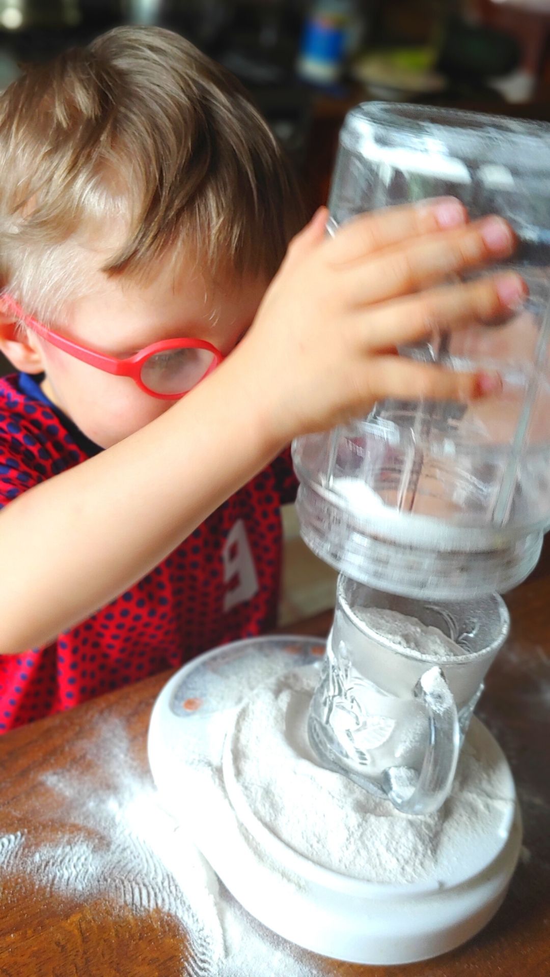 … i pewnie poszłoby całkiem sprawnie, gdyby nie ten pomocnik, który postanowił po swojemu odmierzać mąkę i koniecznie chciał wszystko sam zrobić 😉