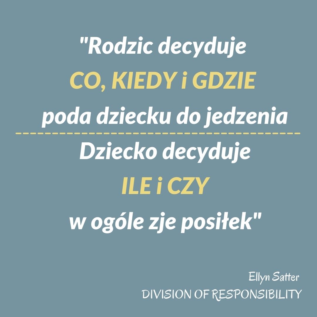 RODZIC/OPIEKUN decyduje, CO dziecko zje, KIEDY i JAK jedzenie będzie podane. DZIECKO decyduje ILE zje i CZY w ogóle zje posiłek.