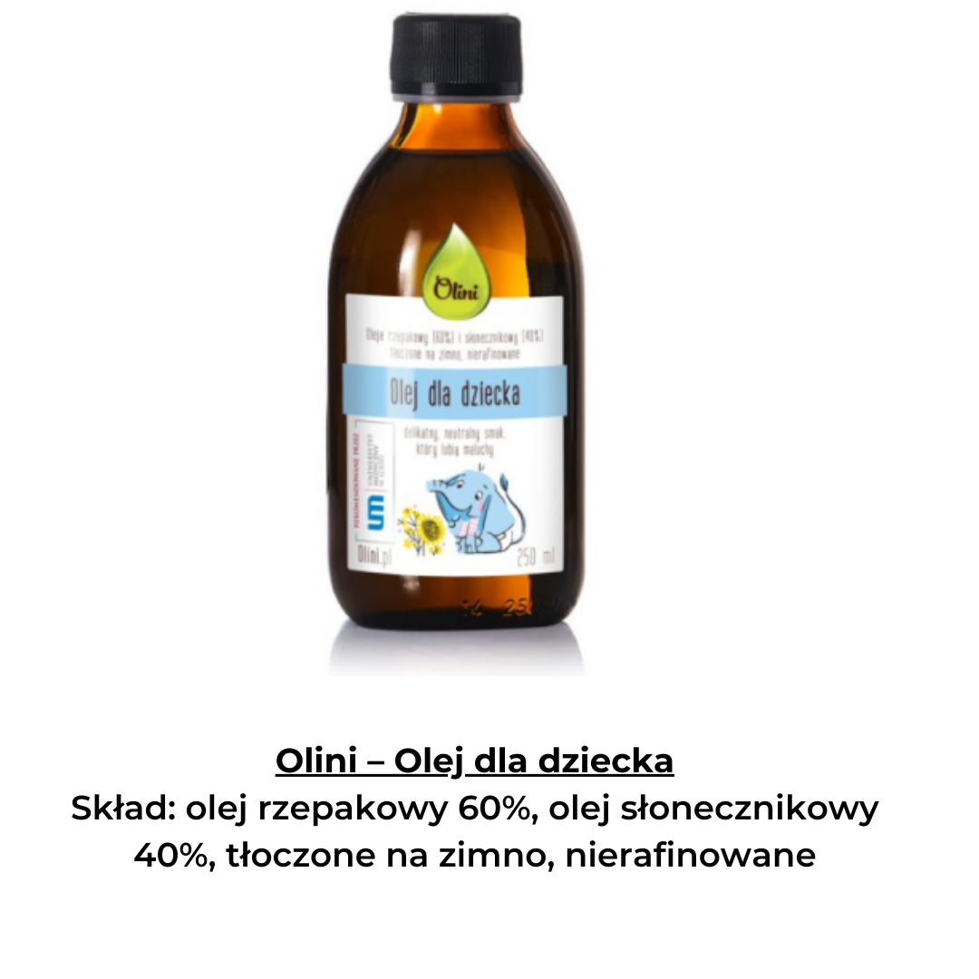 Poza wymienionymi wyżej olejami coraz częściej można spotkać na rynku specjalne oleje dla dzieci będące mieszankami różnych olejów. Poniżej krótki przegląd rynku 😊