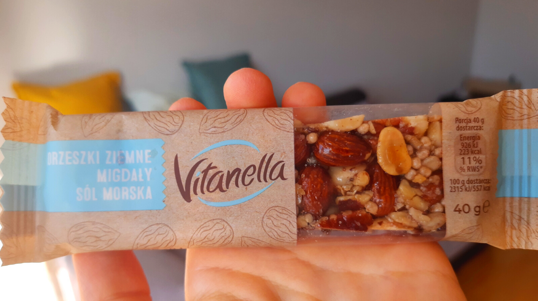 Niestety nie mogę polecić wszystkich batonów marki Vitanella, bo pozostałe, mimo poprawnego składu – mają zdecydowanie za dużo cukru w tak małej porcji.